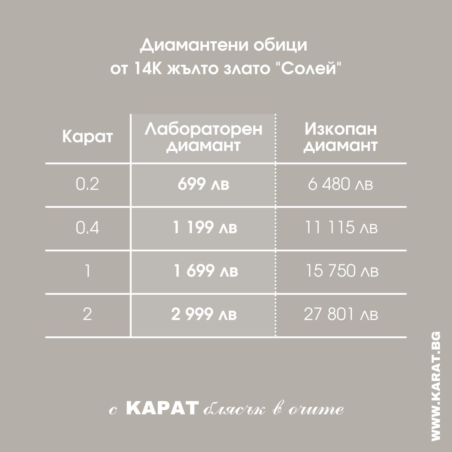 Our clients trust us in choosing lab-grown diamonds because they know that every diamond is unique, even when the size is the same. With us, they can get more sparkle, fire, brilliance, play of light, etc. - basic details, beyond the "4 Cs", which we achieve with strictly defined technical standards at Karat Bulgaria and careful, personal selection of each diamond - all at affordable prices!