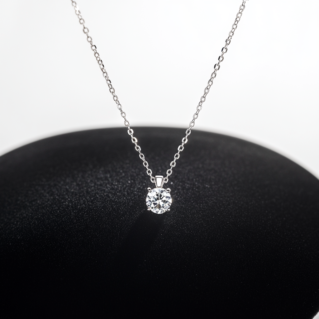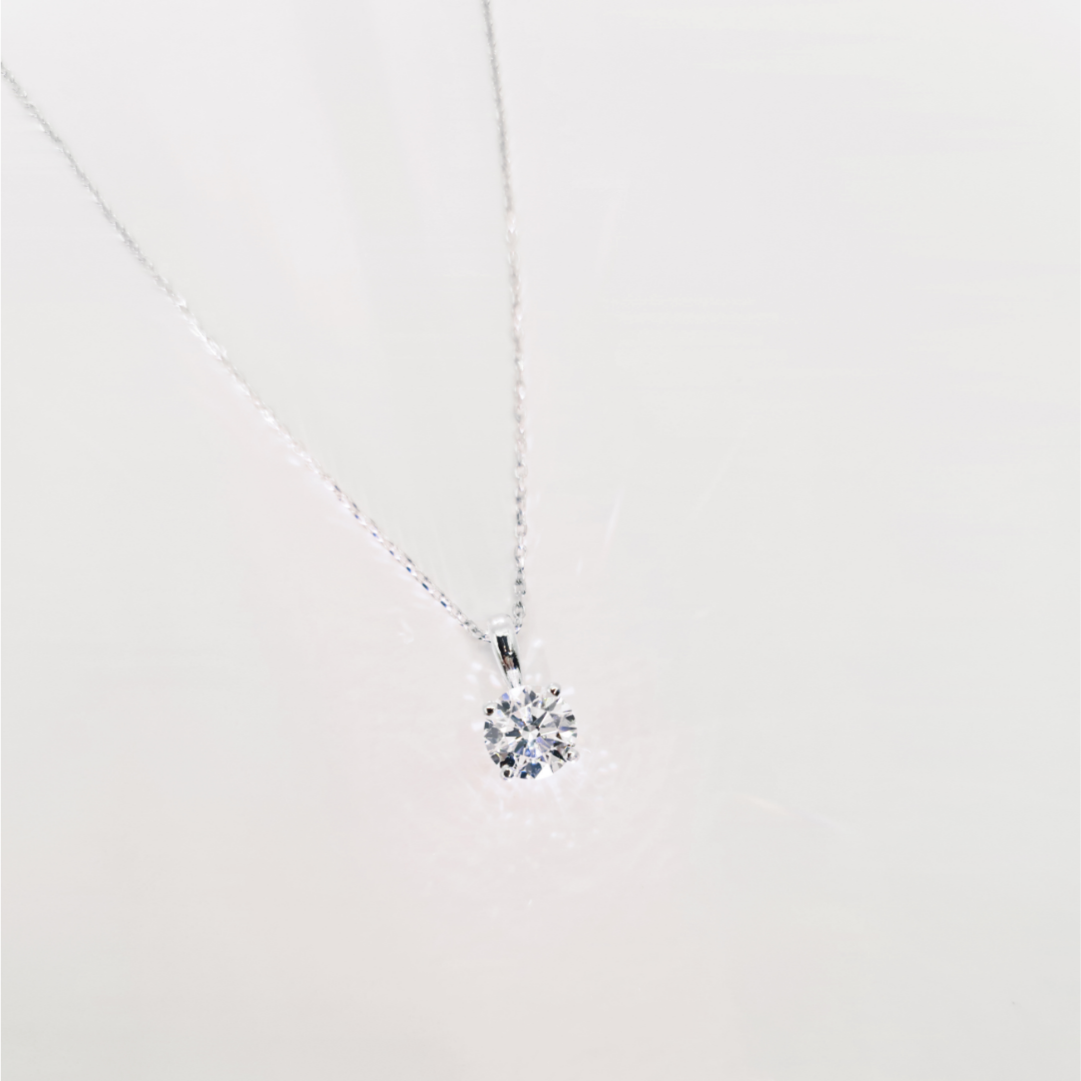Кръгъл диамант, висящ като капка светлина – фино присъствие, което не остава незабелязано. Идеален завършек за романтична визия.