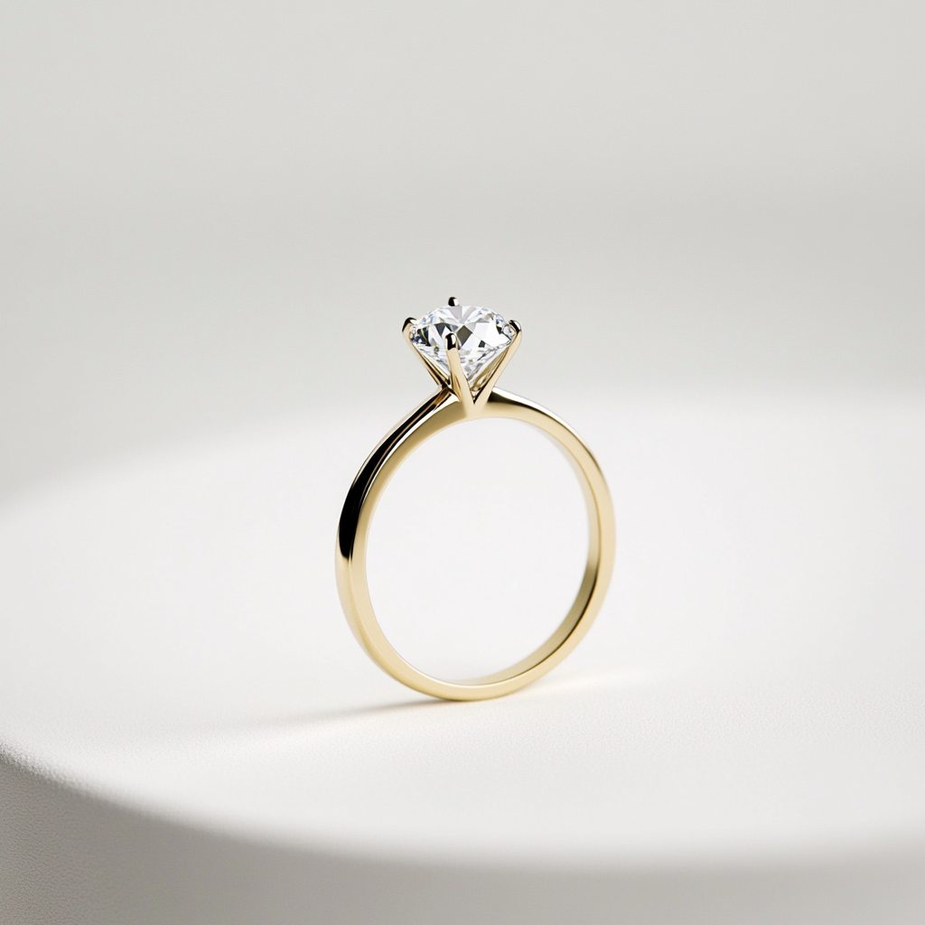 Величествен златен пръстен с възможност за масивен диамант, който излъчва лукс и безкомпромисна красота. Топлият отблясък на златото подчертава сиянието на камъка, превръщайки го в символ на изключителна любов и привързаност.