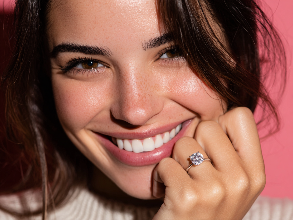 Тази визуална галерия Ви позволява да видите реално как размерът променя присъствието на диаманта. Сравнявайки ги, е ясно, че по-големите диаманти 1–2 ct създават впечатление, което по-малките не могат да постигнат.