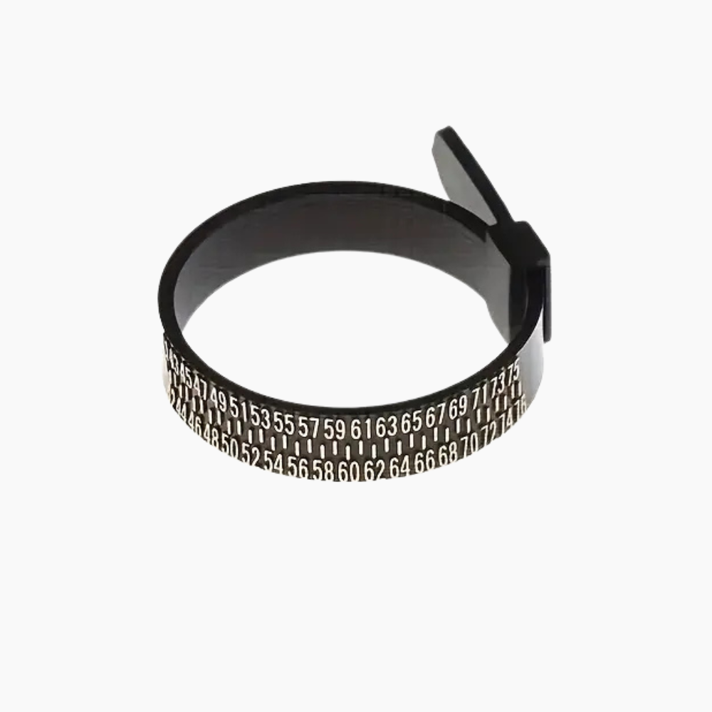 Не гадайте – измерете! Нашата мярка за пръстен Bи показва точния размер за перфектно пасване. Компактна, удобна и лесна за използване – просто я сложете като пръстен и измерете.